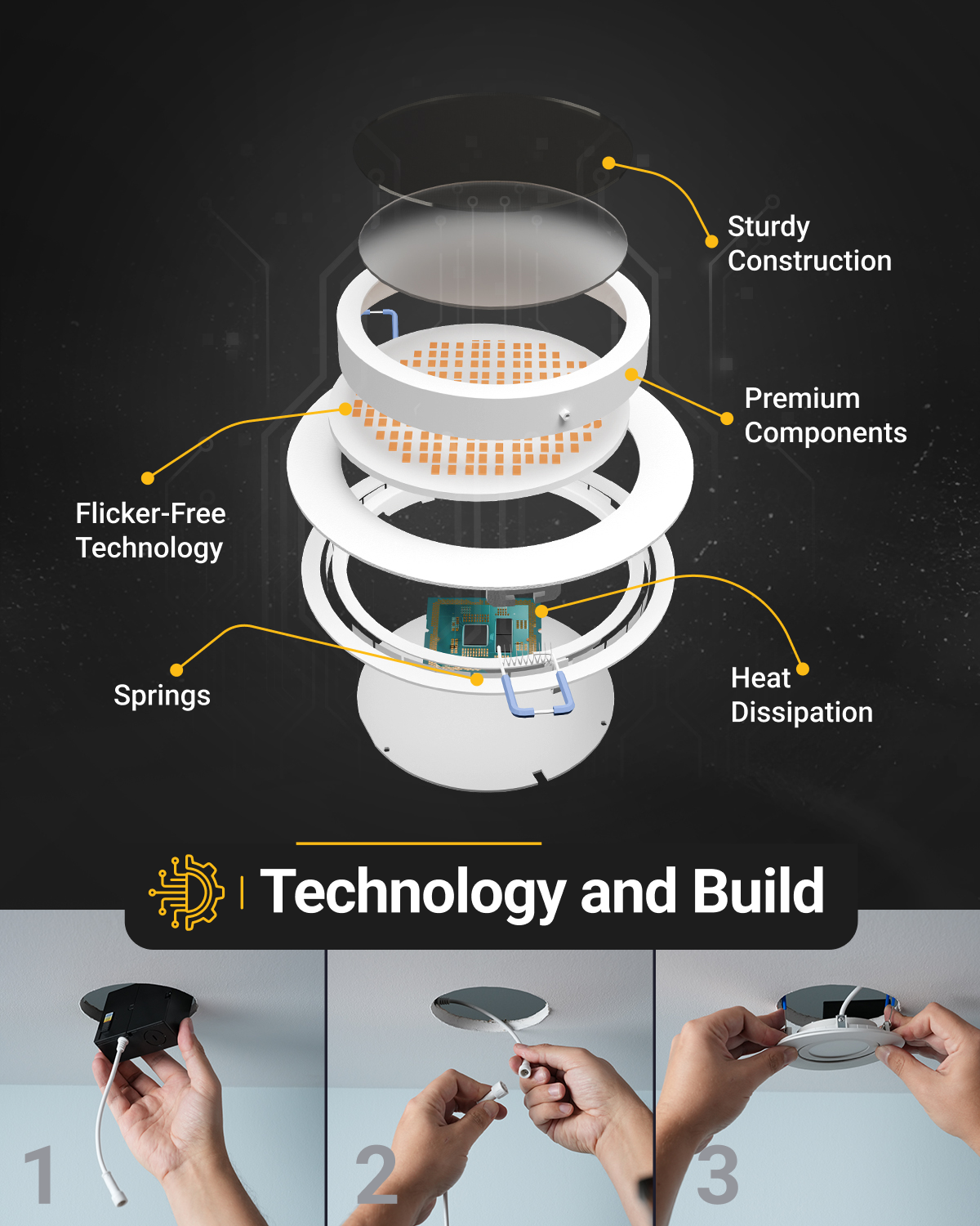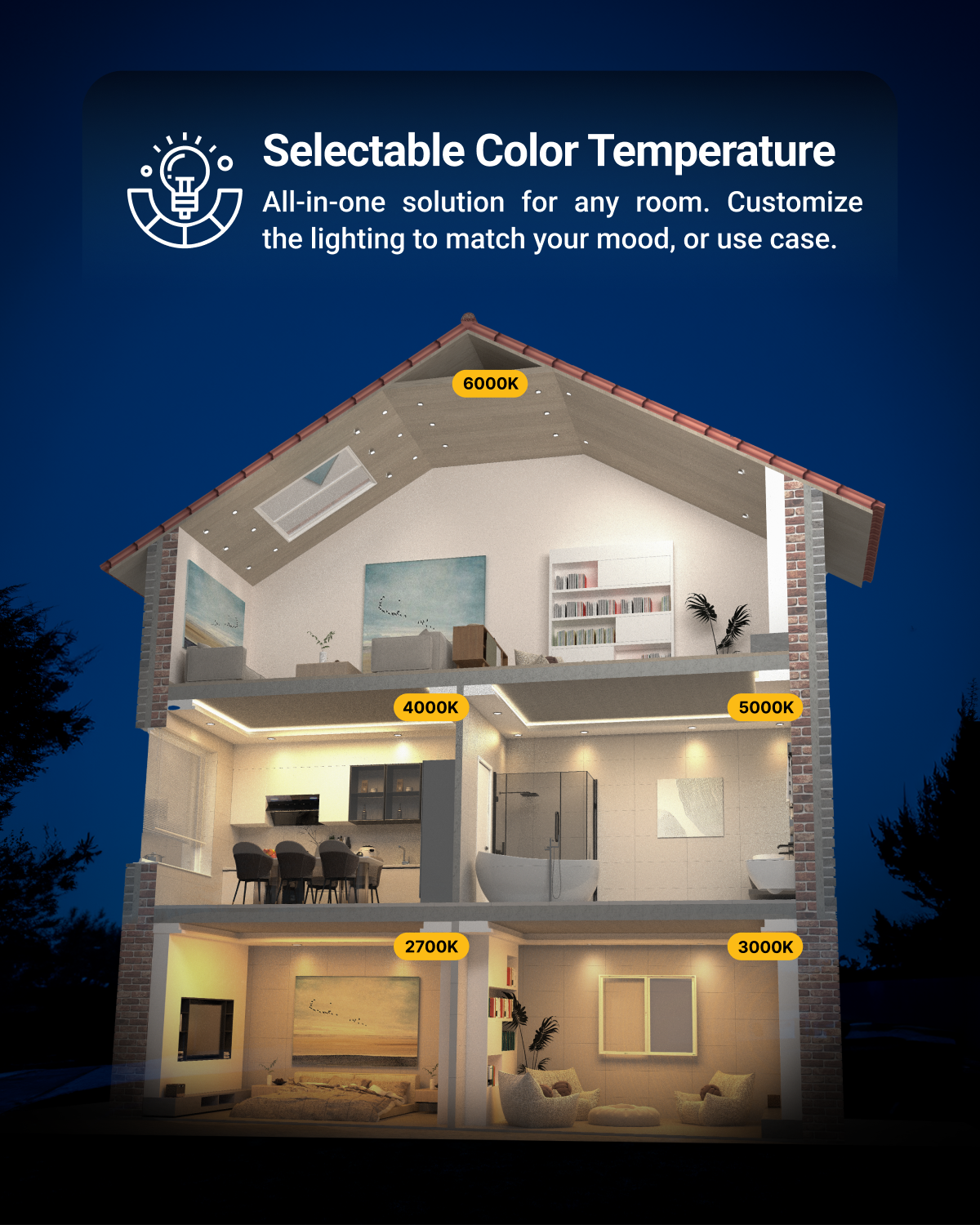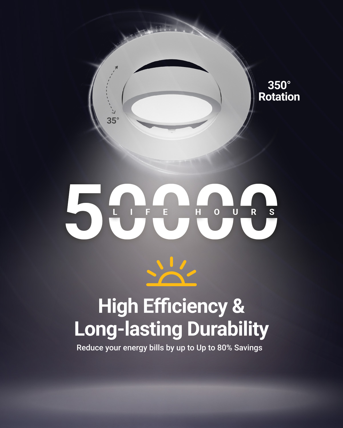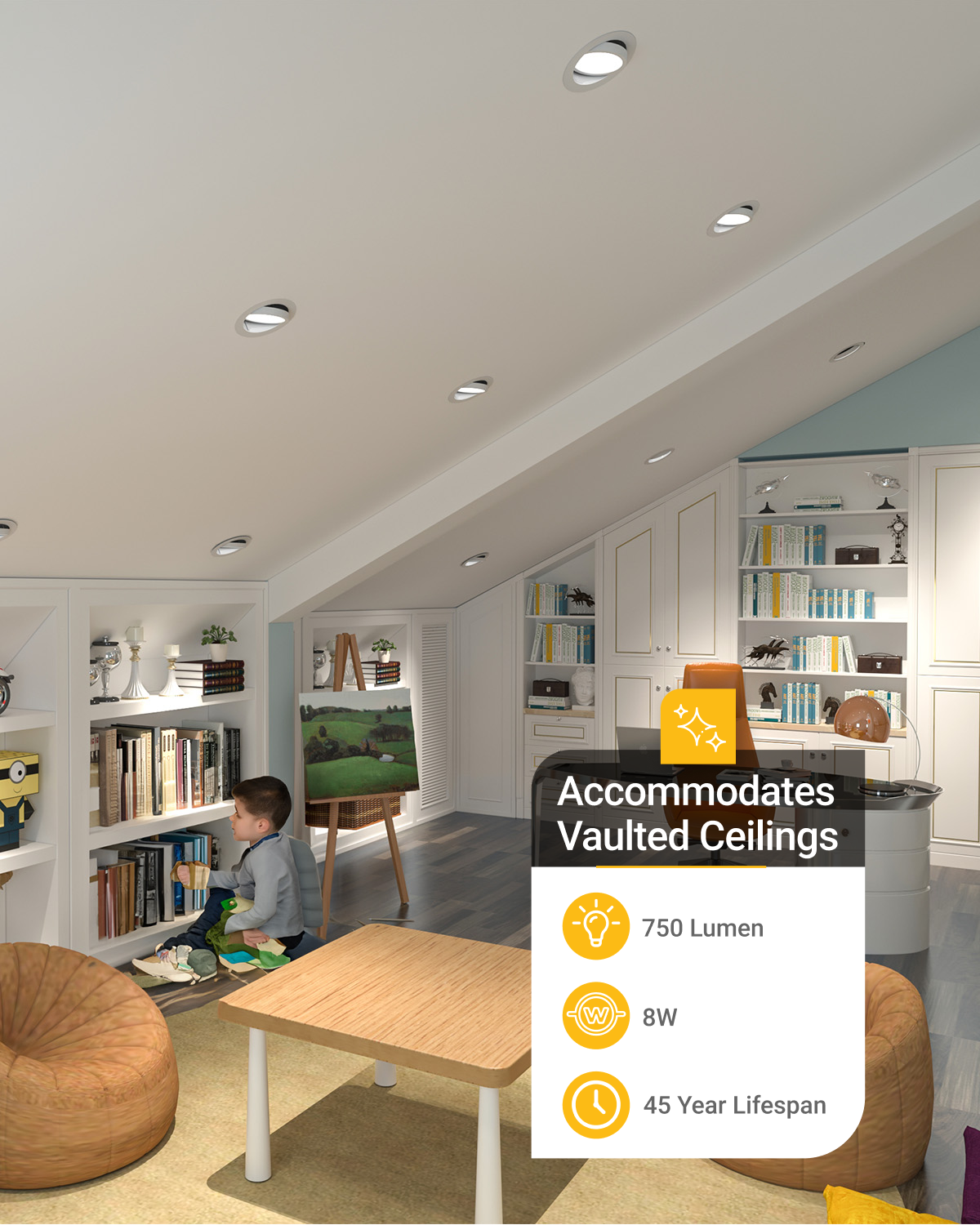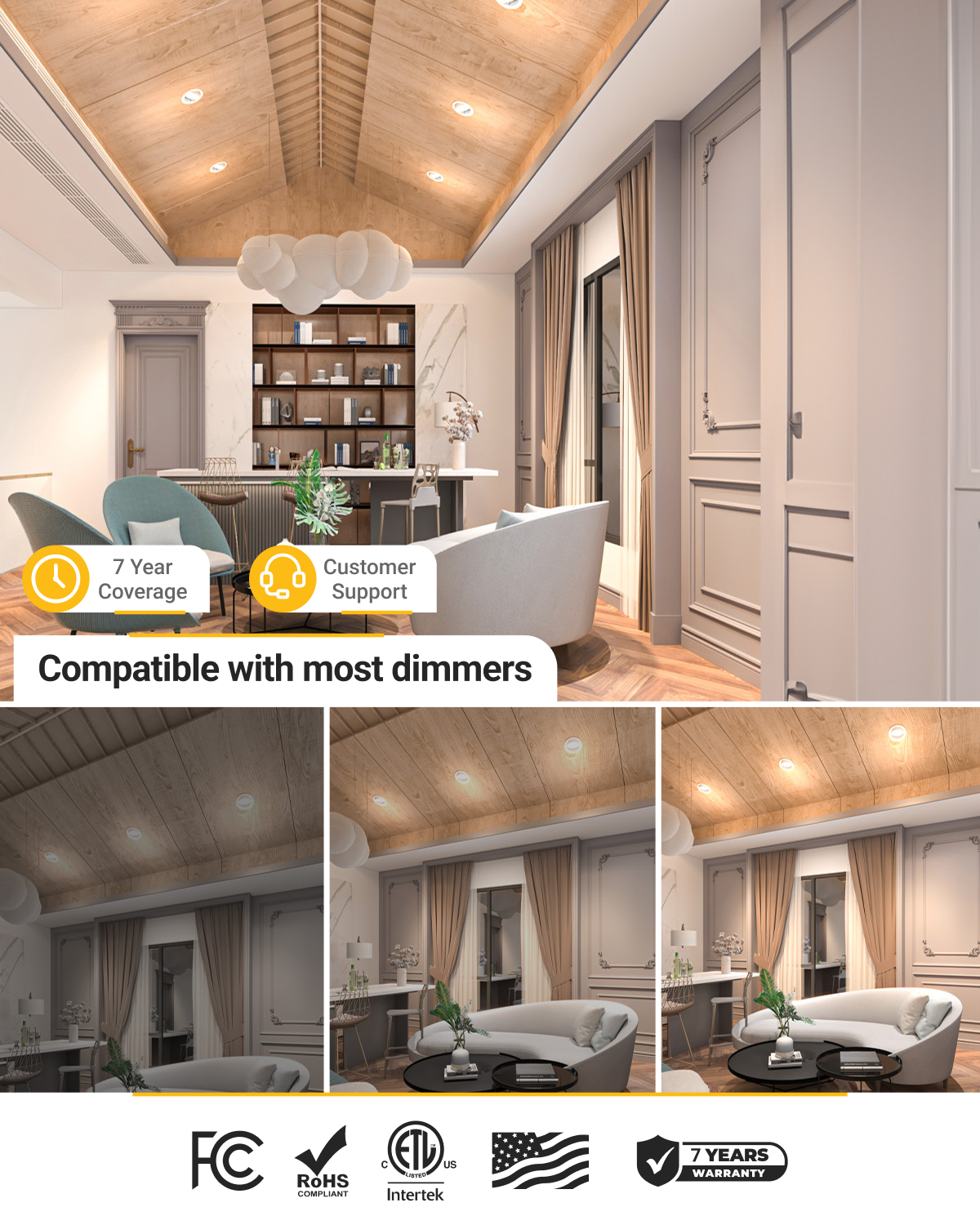 Seamless dimming capabilities (100%-10%) to fit any mood or décor. Our gimbal downlights give off sunlight-like quality for true color rendering.