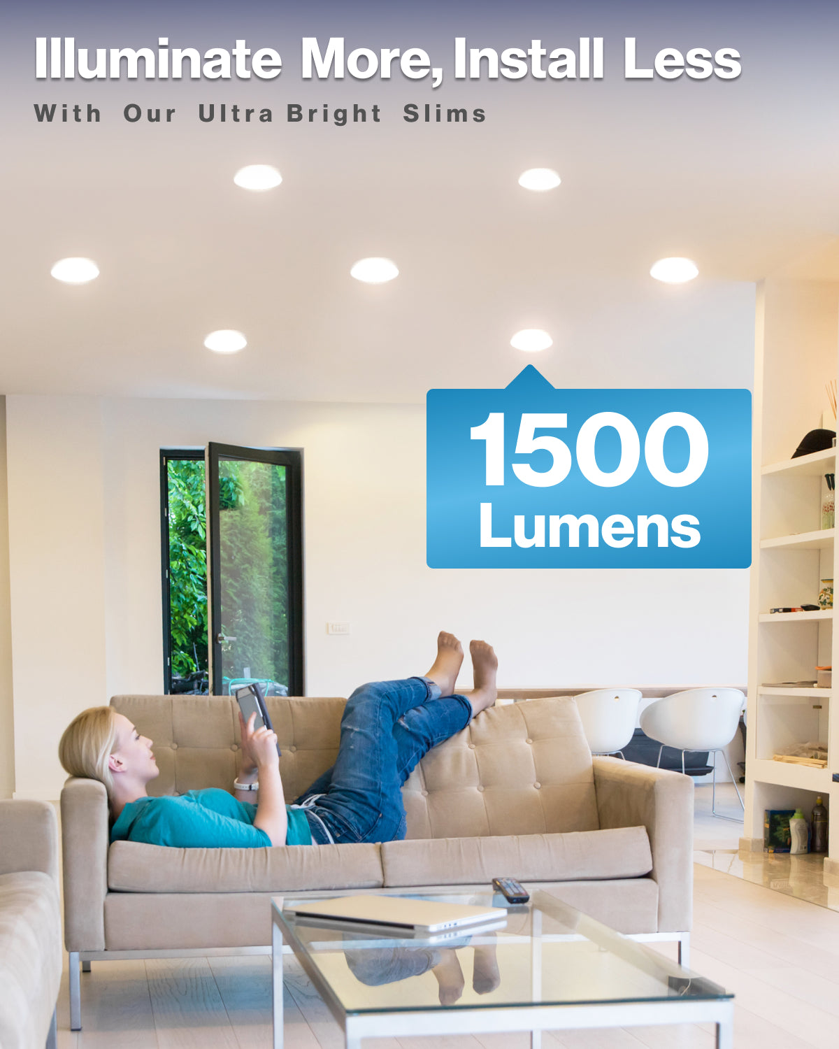 Recessed LED Lighting, 6 Inch, High Lumen Slim, Wafer Thin, Smooth Trim, Selectable CCT, 1500 Lumens