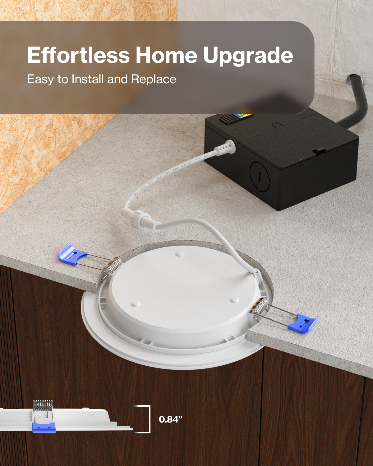 All in one package for easy install high lumen slim recessed lights. No can needed. IC rated for fire safety.