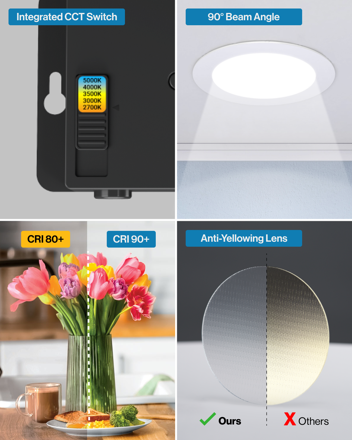 ● IC RATED - Keep your home safe with our thermally protected LED downlights that won't overheat or ignite surrounding insulation in the roof or overhead joist space.