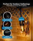 24ft Outdoor String Lights, 12 LED Filament Bulbs, Suspended Standard Sockets, 900 Lumens