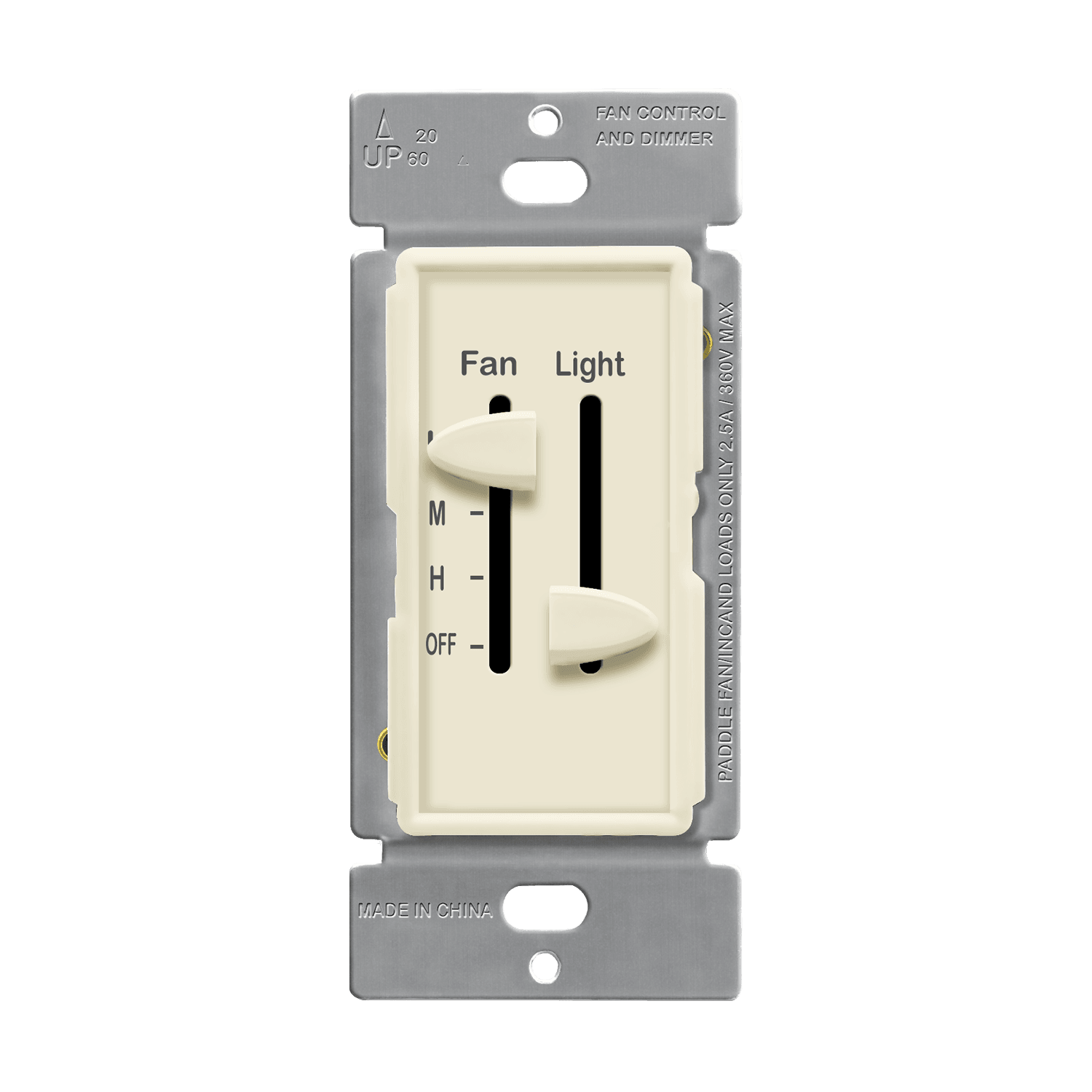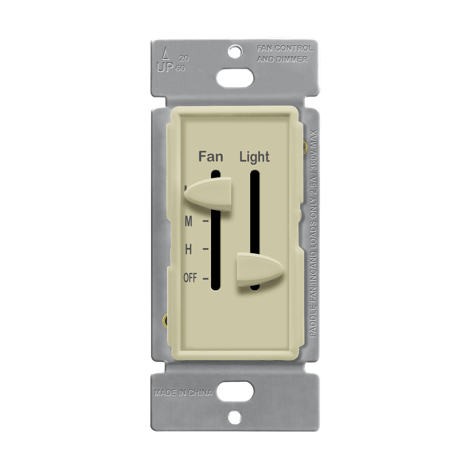 - Dual sliders fan control and dimmer