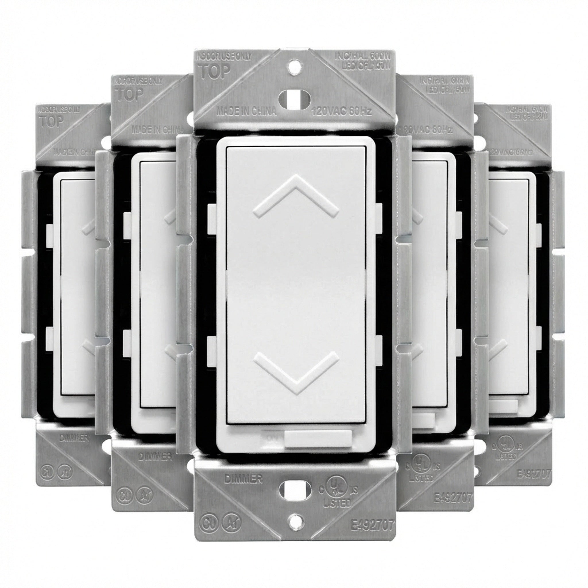 The ENERLITES 57302 is an decorator dimmer wall switch that provides optimal dimming performance for LED bulbs. This dimmer switch is compatible with dimmable LED/CFL and incandescent/halogen lights, allowing control for multiple bulb types on the same circuit. The switch is designed for single pole applications, but three-way installations are possible with the 57302-3K add-on switch.