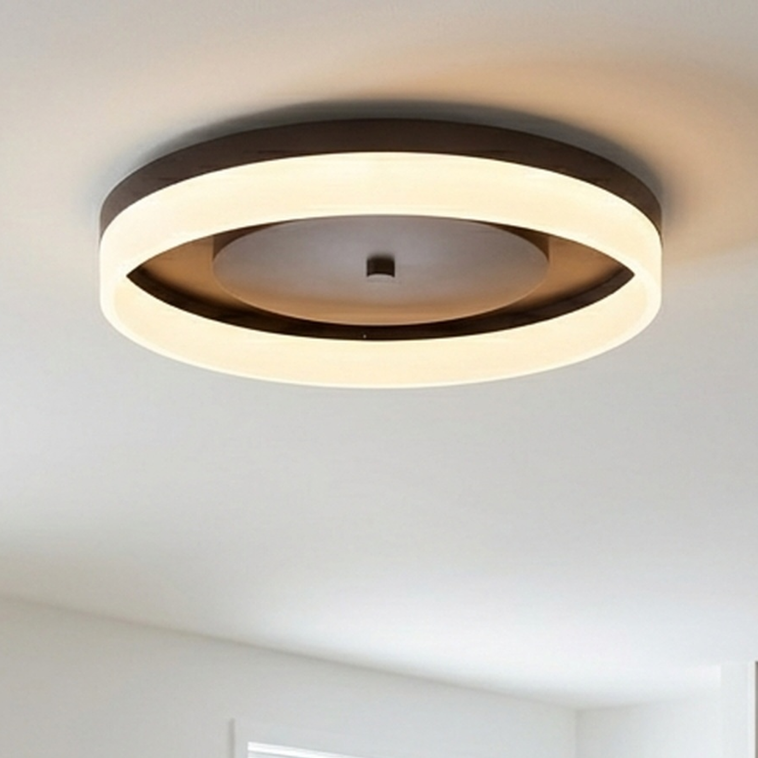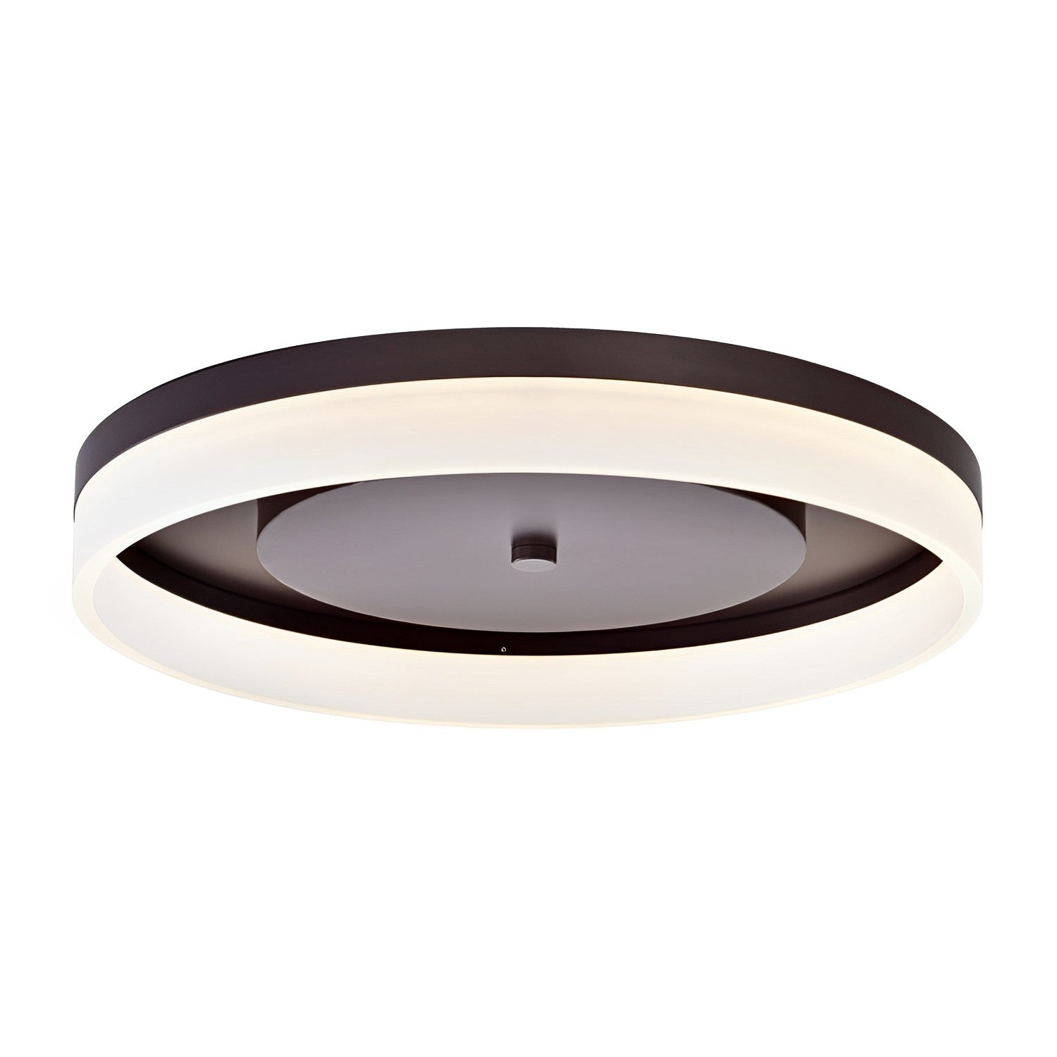 The round LED Ceiling Light fixture offers a chic touch to your home with its elegant yet understated design. This modern ceiling fixture features an acrylic shade and oil-rubbed bronze finish that gently diffuses light to minimize glare and create a cozy atmosphere. It is constructed with cold-rolled steel to ensure durability while maintaining a sleek and polished look. Available in three sizes—12", 16", and 20"—with brightness levels of up to 2,330 lumens, this surface-mount LED light is versatile and fits rooms of different sizes. Bask in the soothing glow of the 3000K warm white color temperature, perfect for creating a peaceful and relaxing ambiance.