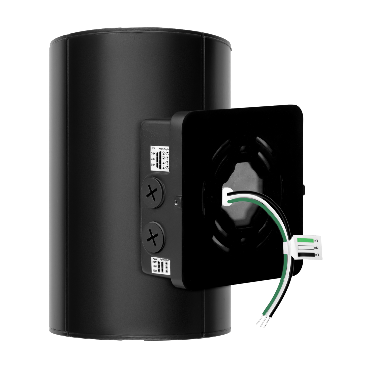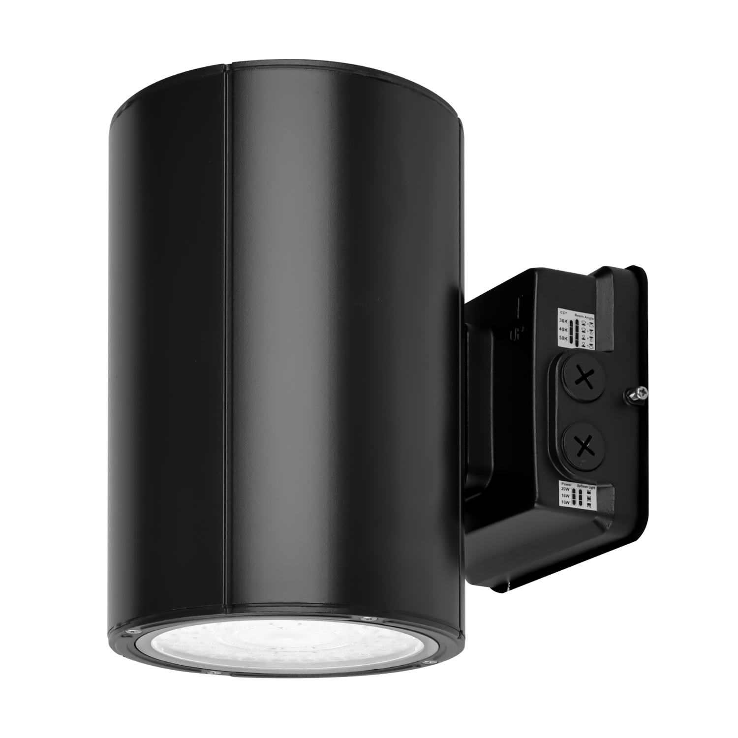 | Black Cylinder LED Wall Sconce, 38W/31W/19W, Dusk to Dawn Photocell , 5500 Lumens Specifications