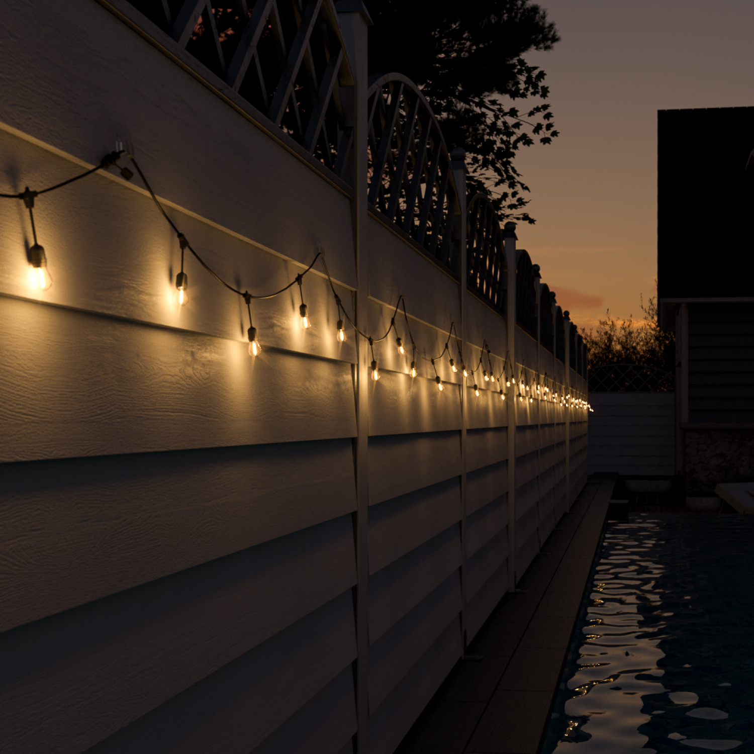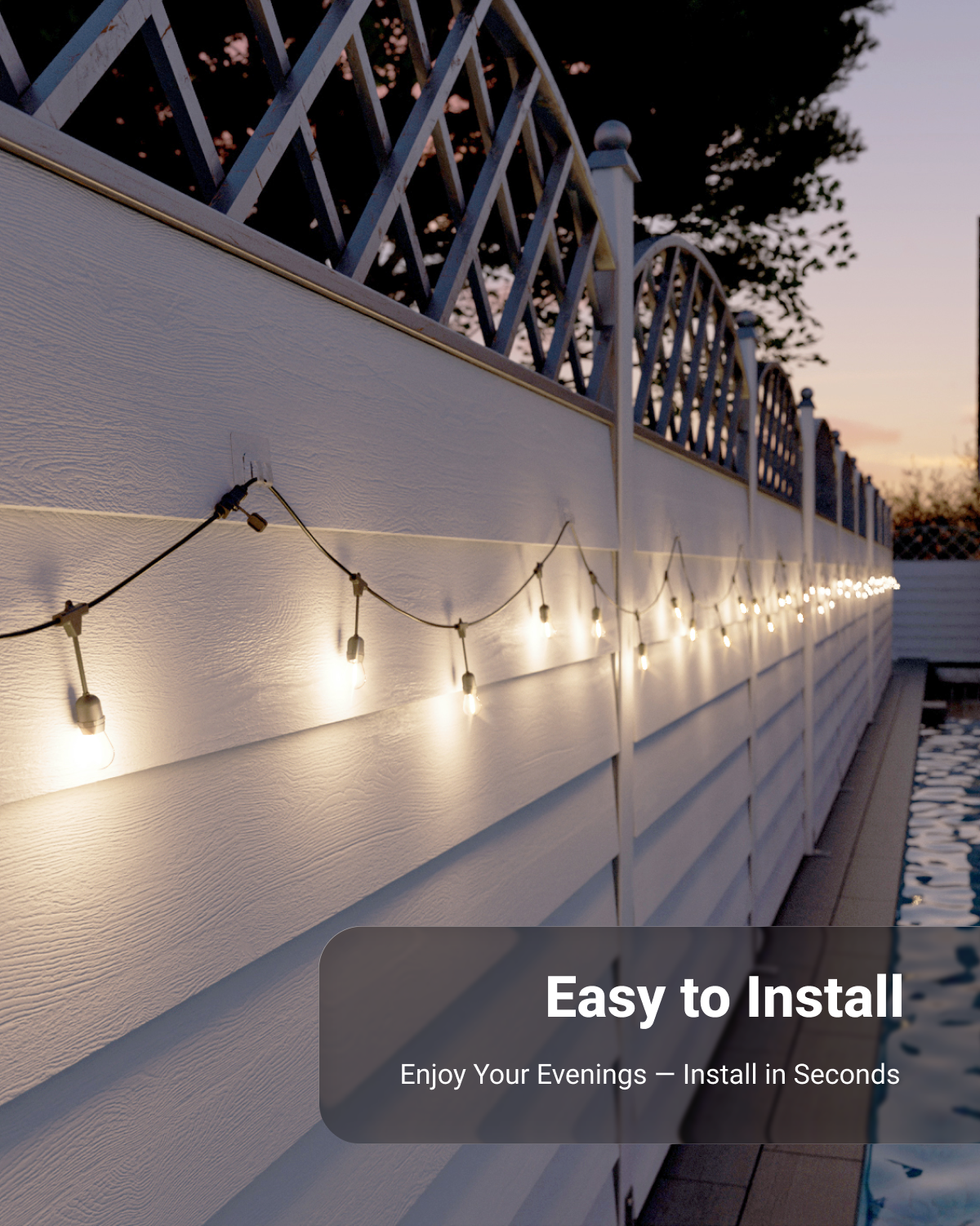 Keep your outdoor string lights secure and perfectly positioned with our double hook clips. Ideal for bistros, pergolas, patios, cafes, and more.