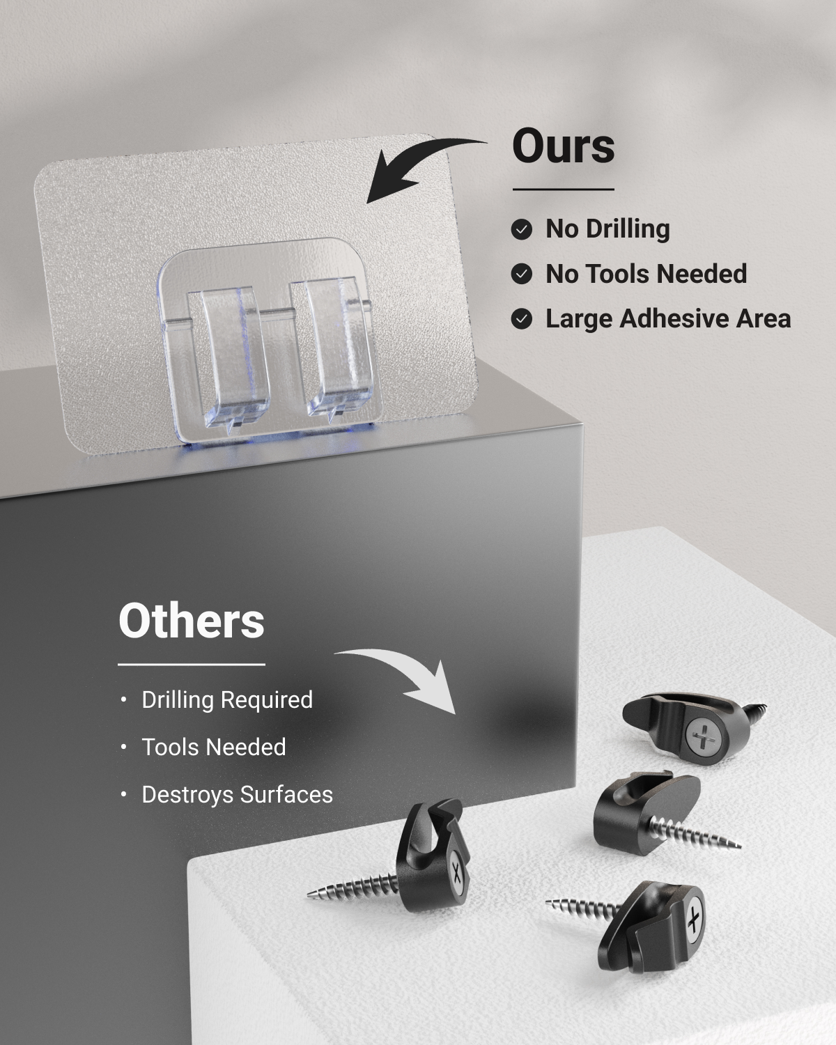Installation is hassle-free thanks to the adhesive pads, eliminating the need for tools.
