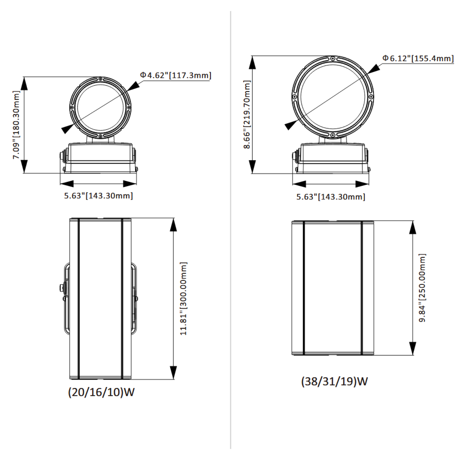 | Dark Bronze Cylinder LED Wall Sconce, 38W/31W/19W, Dusk to Dawn Photocell , 5500 Lumens Specifications