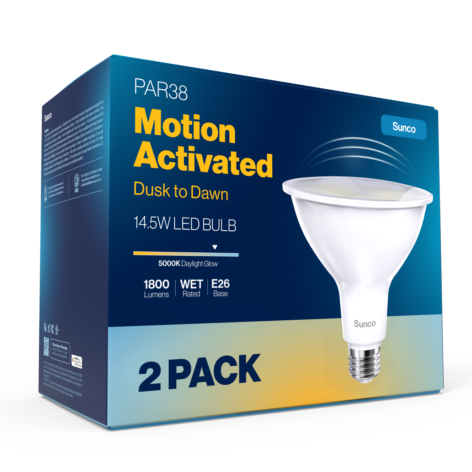 Sunco’s PAR38 LED D2D Bulbs with Motion Sensor are wet rated, and ideal for outdoor spot, track, and landscape lighting. Light only when needed.