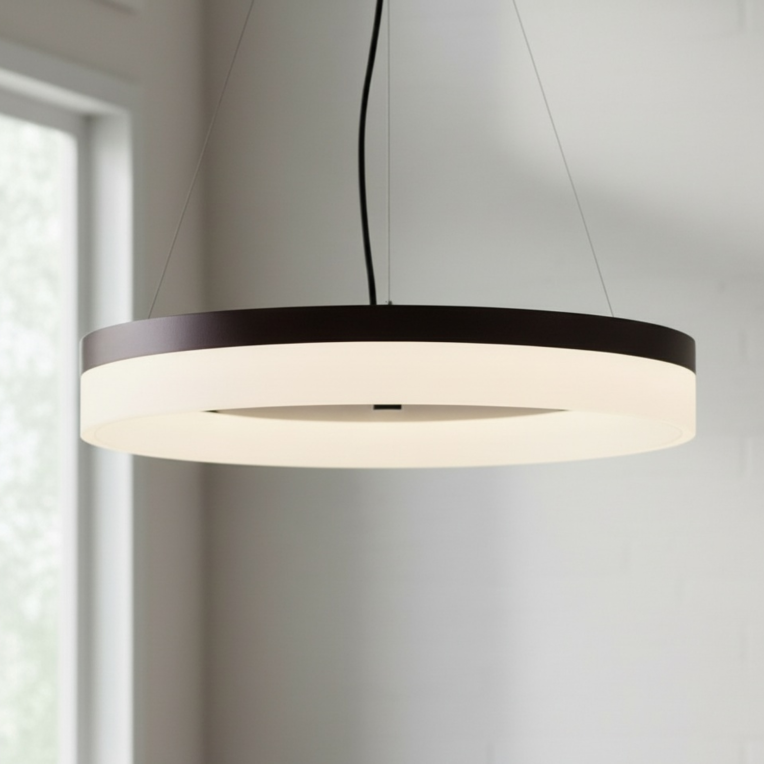Transform your living or working space into a beautifully lit environment with the LED Pendant Light fixture. Designed with an adjustable hanging cable, this pendant lamp allows you to customize the installation to suit your space. It delivers up to 2,330 lumens of energy-efficient light in a 3000K warm white color temperature, creating a cozy and inviting ambiance. The steel housing ensures durability while the acrylic shade provides uniform illumination. Finished with an elegant oil-rubbed bronze coating, it complements many industrial, urban, modern, loft, and transitional decors. Ideal for use above kitchen islands, breakfast nooks, hallways, offices, living rooms, and dining rooms—or anywhere a pendant fixture can be placed.