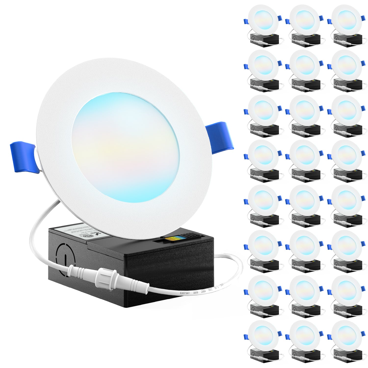 ● SELECTABLE CCT - Choose from 5 color temperatures (2700K, 3000K, 4000K, 5000K, 6000K) and tune your 4" Slim Downlight to your preferred color setting. Easy CCT selection with the slider switch on back of the junction box. Simply try out the various color temperatures to suit the look and feel of your room, then lock in your selection during the installation.