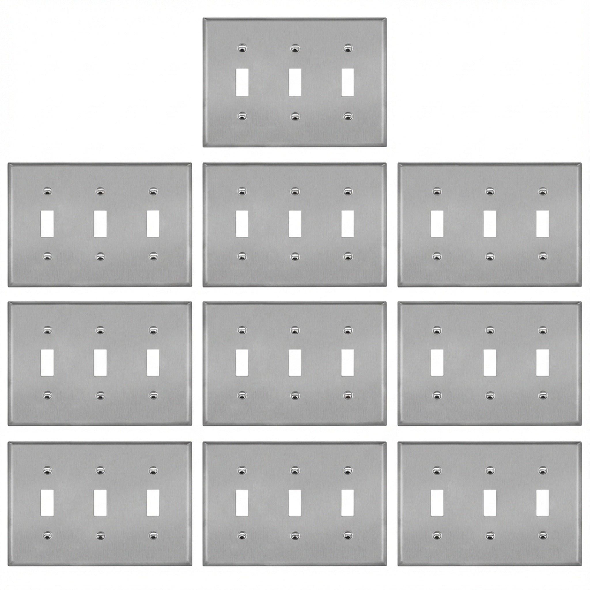 Enerlites Toggle Switch Three-Gang Metal Wall Plate, Mid-Size