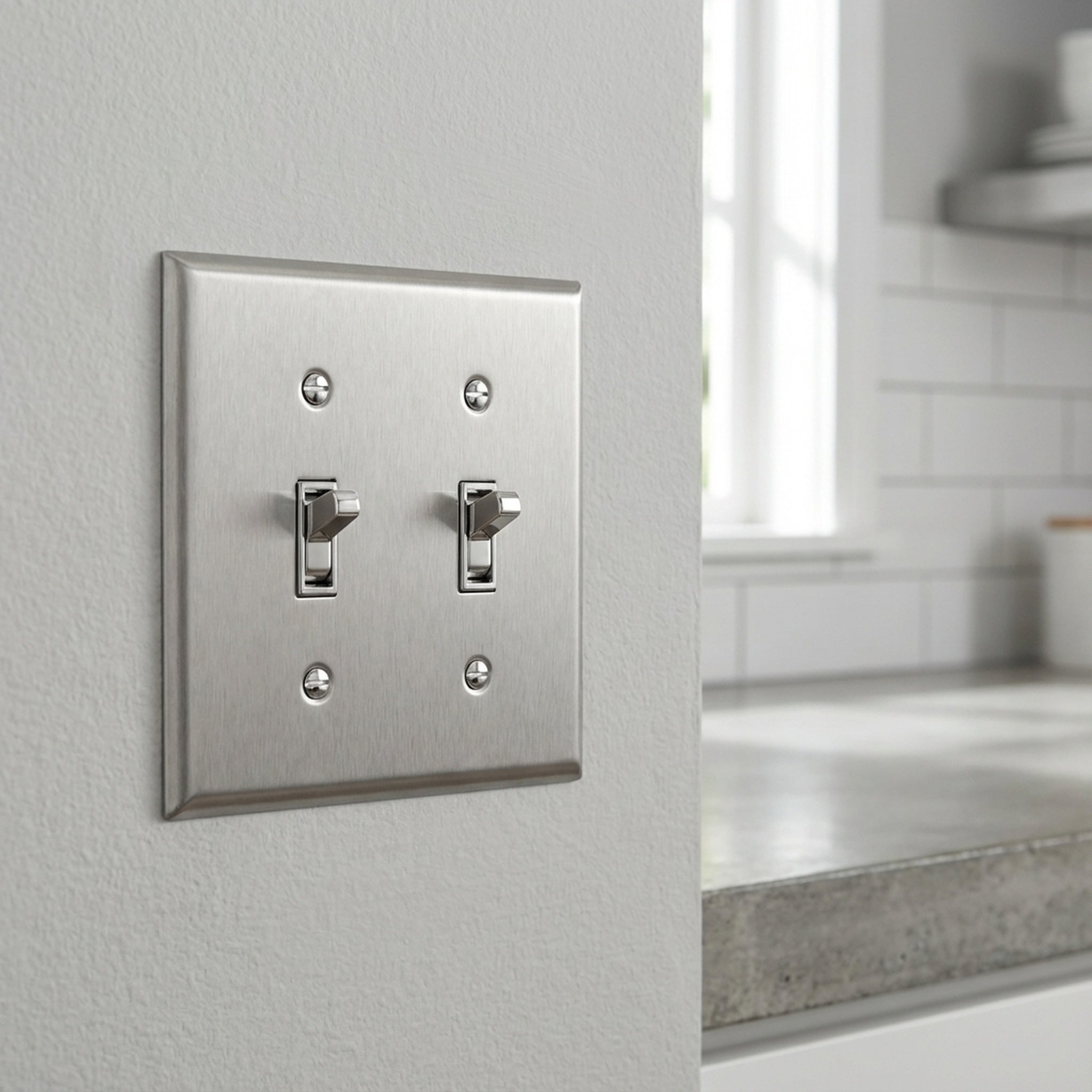 Enerlites Toggle Switch Two-Gang Metal Wall Plate, Mid-Size