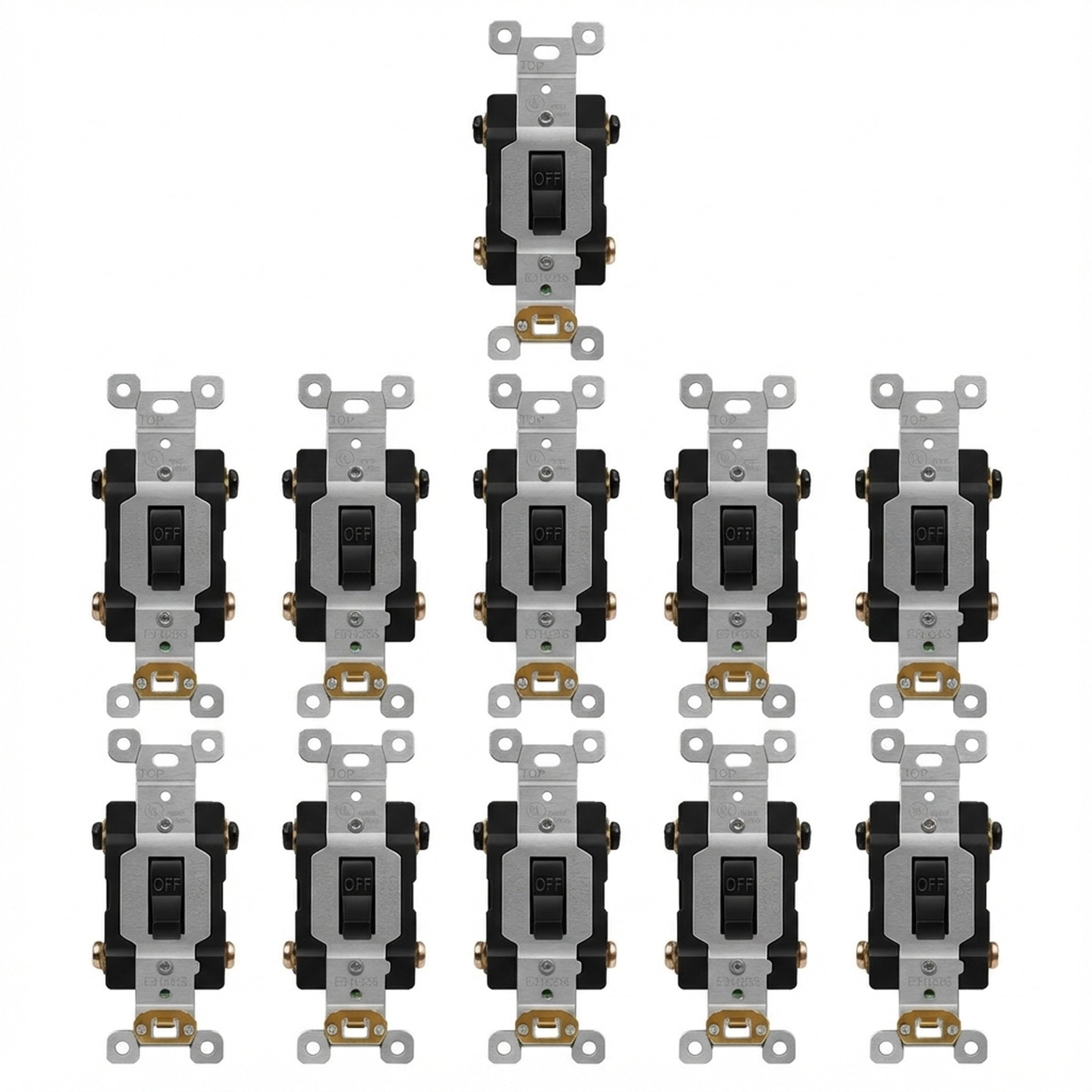 This Commercial Grade Heavy-Duty Toggle Switch is designed for faster installation with a combination of side wiring and push-in wiring. The steel mounting strap is made of a galvanized steel sheet for corrosion resistance.