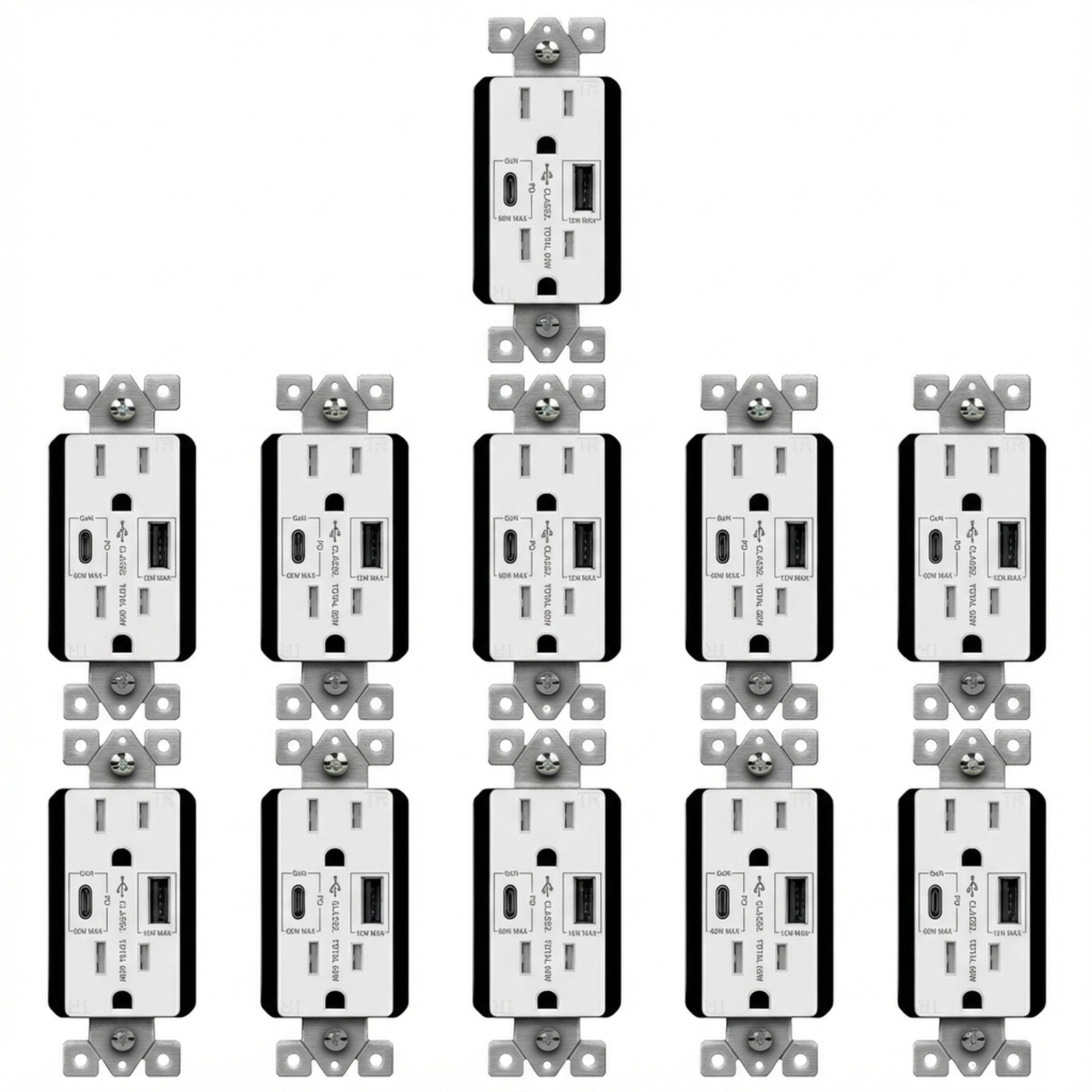 Enerlites 60W Power Delivery, Type A/C USB Outlet, Tamper-Resistant 15A Duplex Receptacles