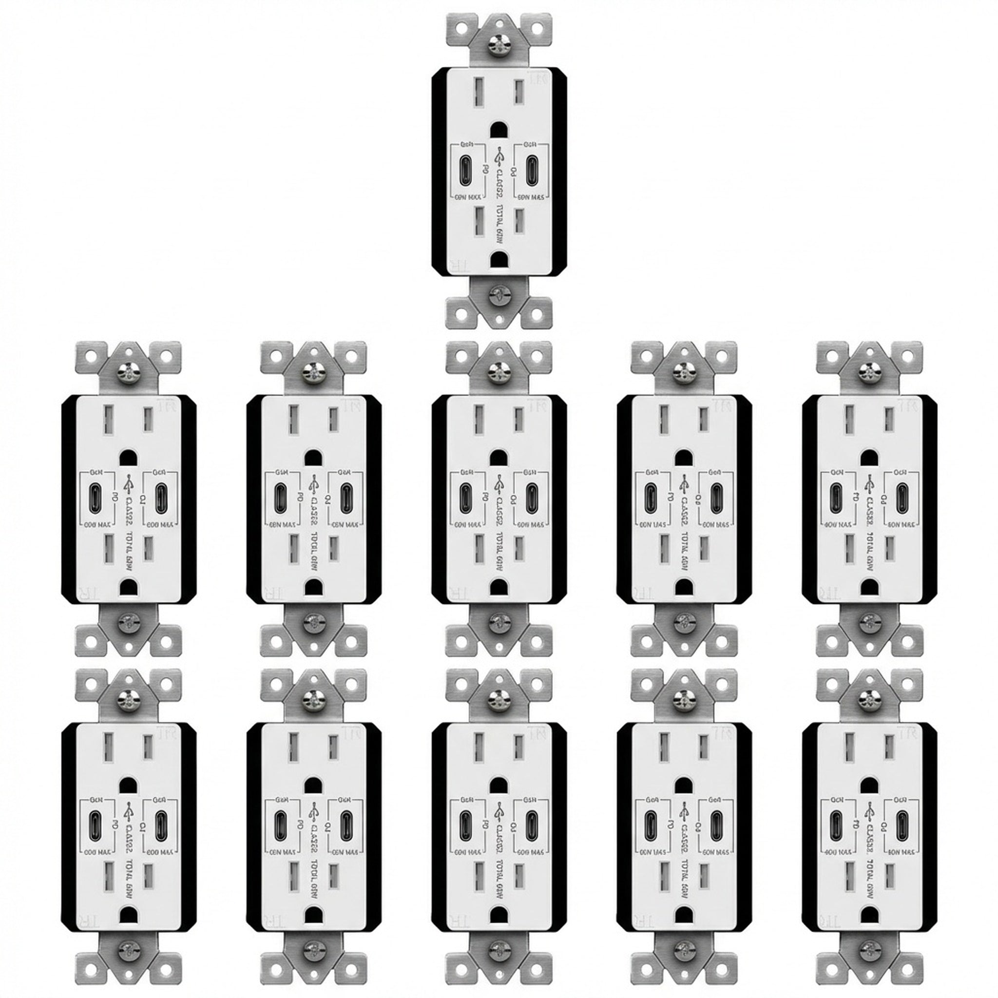 • The all-in-one USB Charging Tamper-Resistant Receptacle includes 2 USB-C PD 3.0 ports, which are tailored for multiple devices and provide fast charging at the same time.