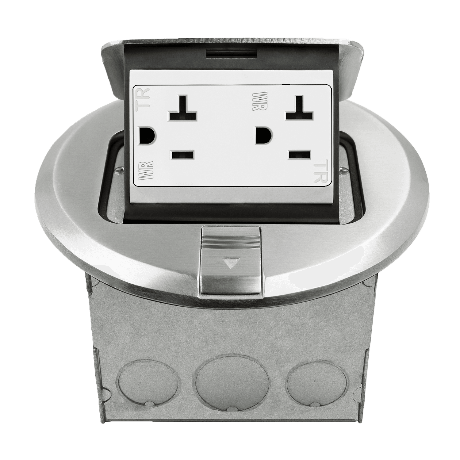Enerlites Round Pop-Up Floor Box Kit with 20A Decorator Duplex Tamper & Weather Resistant Receptacle