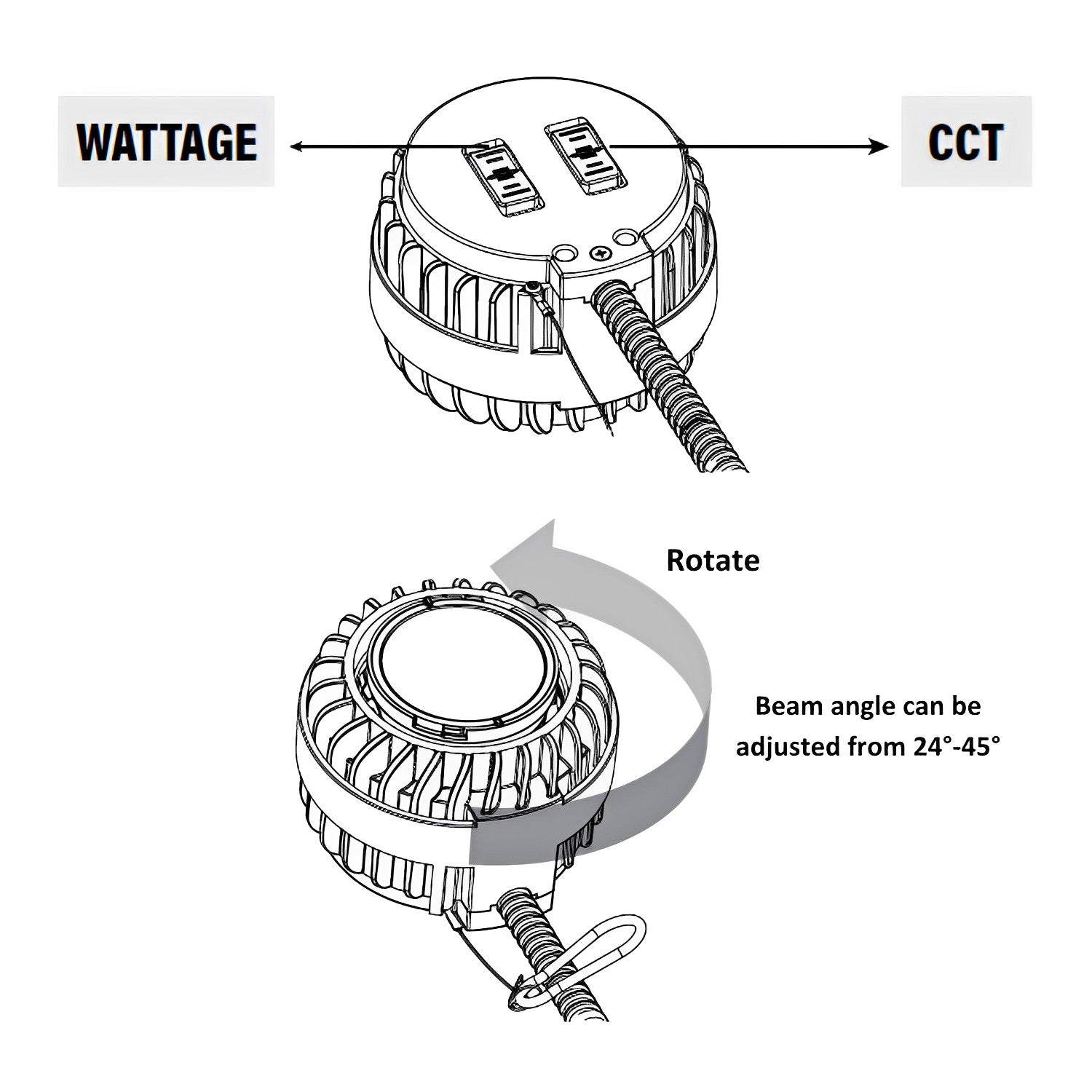 Try out the various wattage options (20W, 25W, 30W) and color temperature options (2700K, 3000K, 3500K, 4000K, 5000K) using the slider switch inside the LED downlight, then lock in your preference during the installation process.