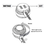 The Commercial Recessed LED Retrofit Light features a beam angle that can be adjusted from 24°-45° by rotating the area around the lens of the module. This allows for precise lighting control, making it perfect for highlighting specific areas or providing wider coverage when needed.