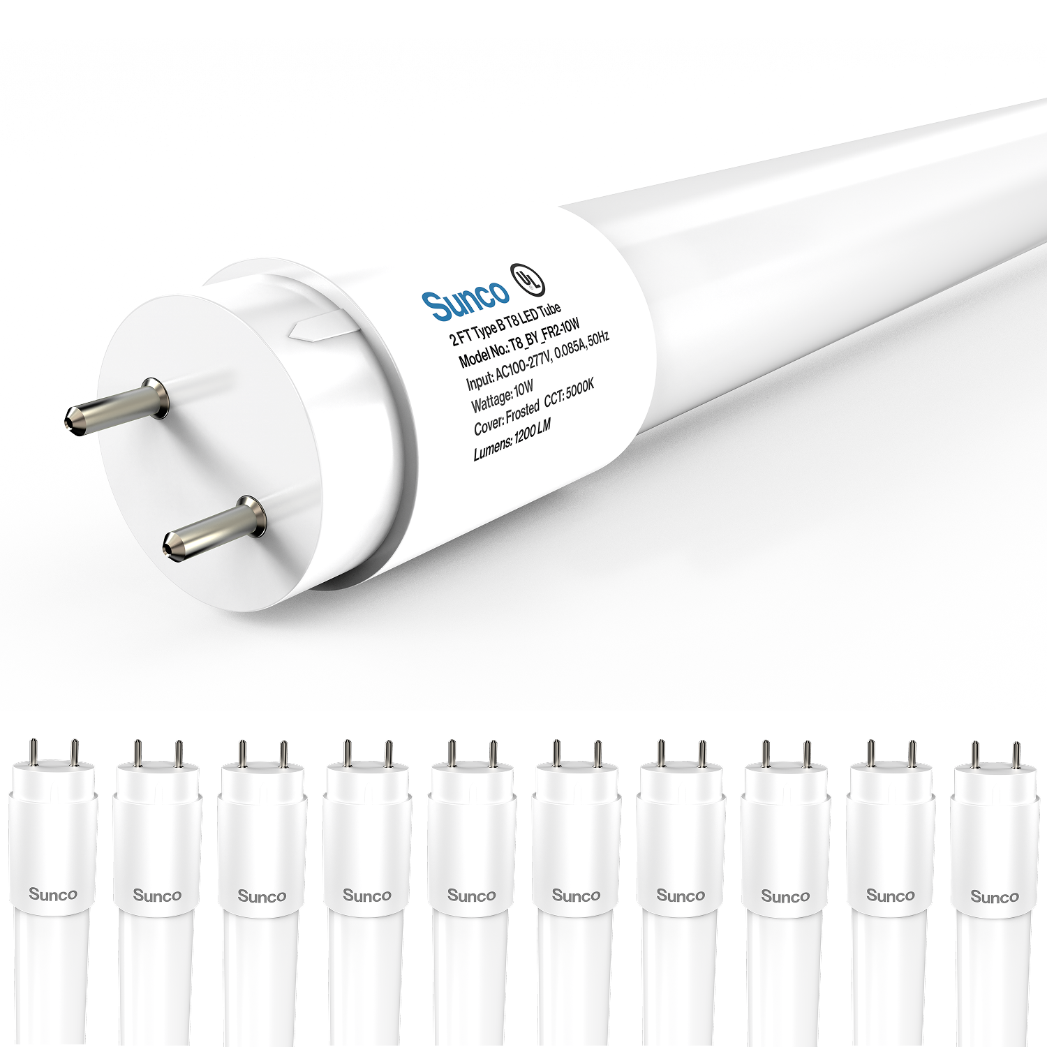 T8 LED Tube, 2ft, Frosted Glass, Bypass, Type B, 10W, Single/Double Ended, 1200 Lumens Specifications