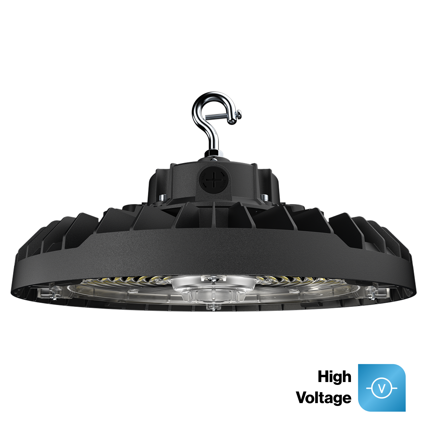 Install this compatible UFO High Bay for commercial and industrial locations that only are suited for high input voltages with hook mount